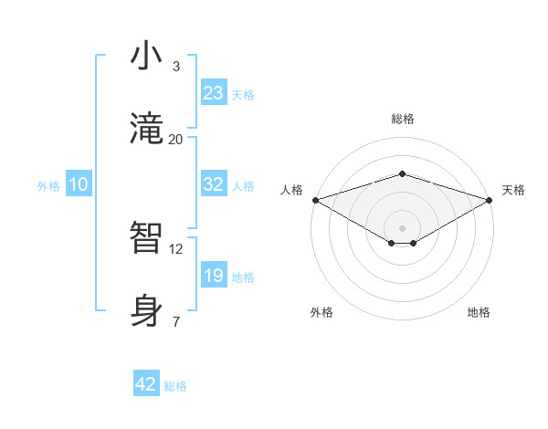 小滝 智身さんの天格は23画の5点!