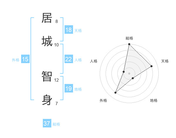 居城 智身さんの総格は37画の5点!