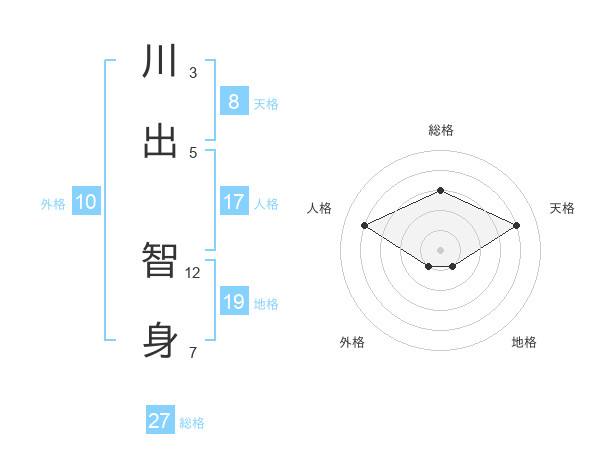 川出 智身さんの総格は27画の3点!
