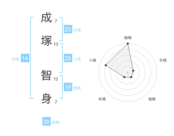 成塚 智身さんの総格は39画の5点!