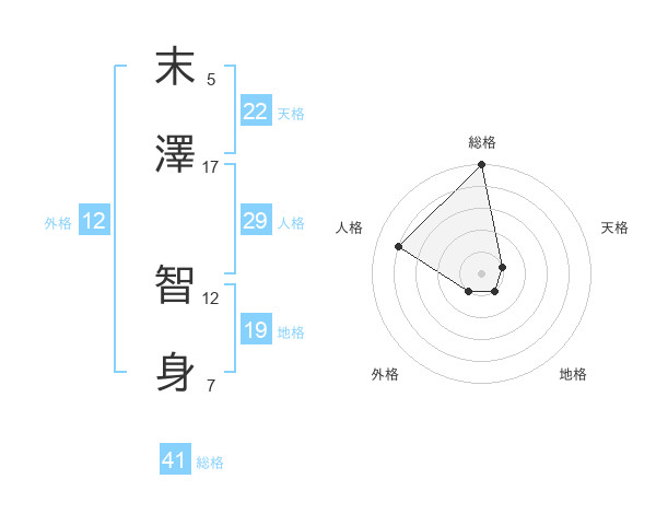 末澤 智身さんの総格は41画の5点!