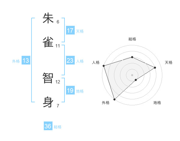 朱雀 智身さんの人格は23画の5点!