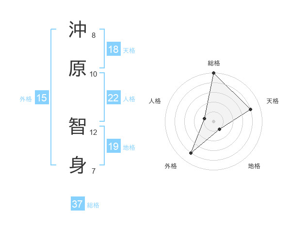 沖原 智身さんの総格は37画の5点!