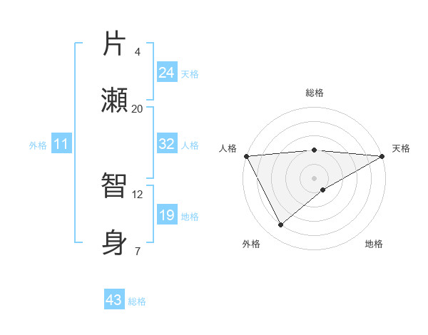 片瀬 智身さんの総格は43画の2点!