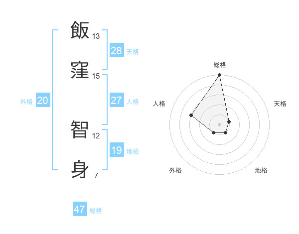 飯窪 智身さんの総格は47画の5点!