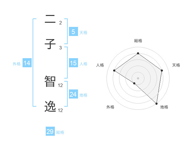 二子 智逸さんの天格は5画の4点!