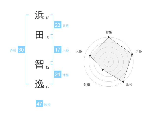 浜田 智逸さんを姓名の画数から五運を鑑定