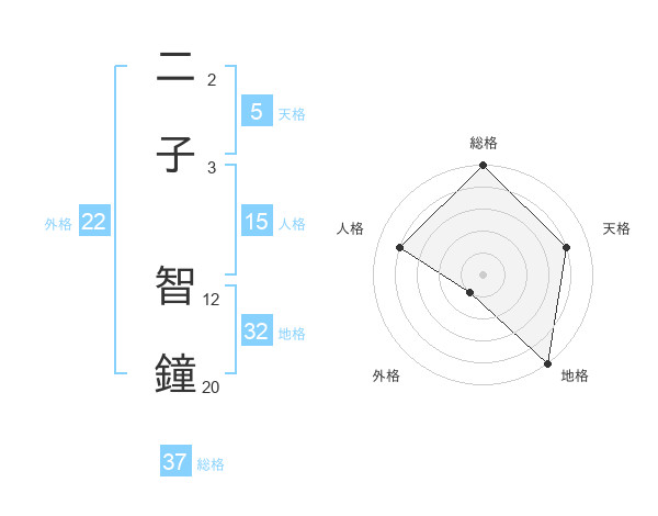 二子 智鐘さんの総格は37画の5点!