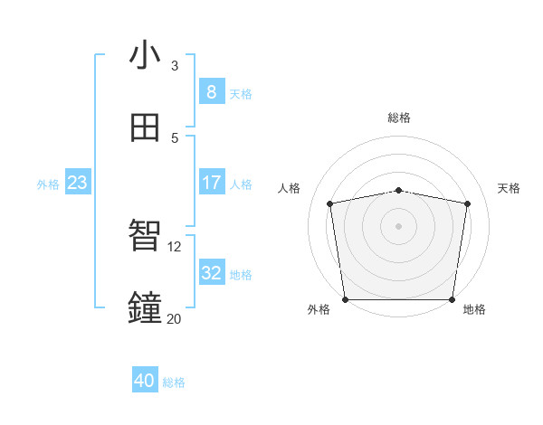 小田 智鐘さんを姓名の画数から五運を鑑定