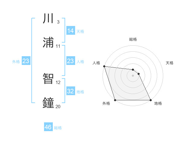 川浦 智鐘さんの外格は23画の5点!