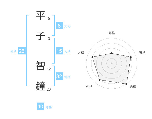 平子 智鐘さんの地格は32画の5点!