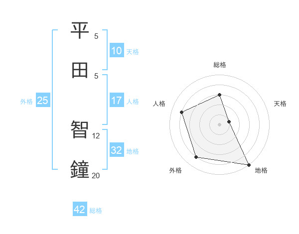 平田 智鐘さんを姓名の画数から五運を鑑定