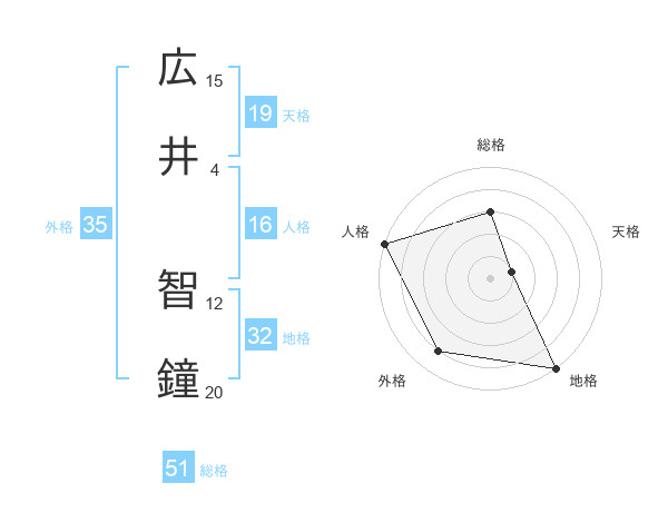 広井 智鐘さんの総格は51画の3点!