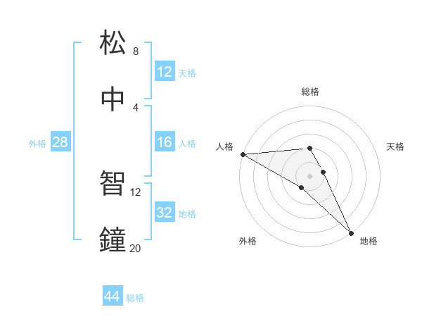 松中 智鐘さんの総格は44画の2点!