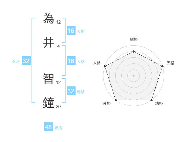 為井 智鐘さんを姓名の画数から五運を鑑定