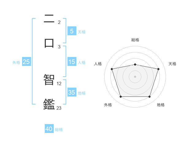 二口 智鑑さんの総格は40画の2点