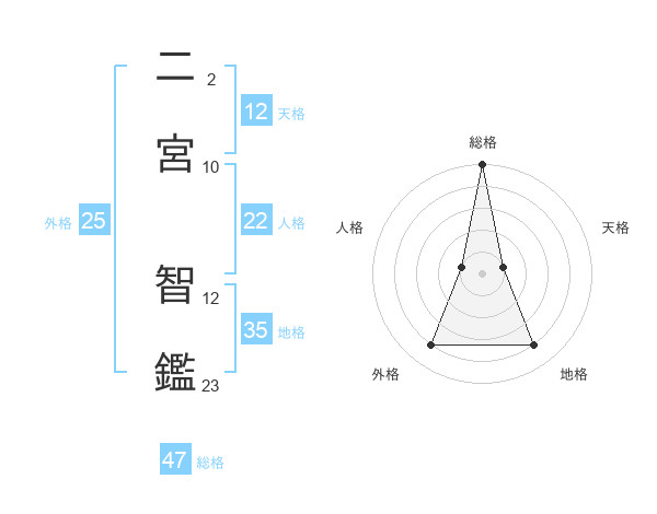 二宮 智鑑さんの総格は47画の5点!