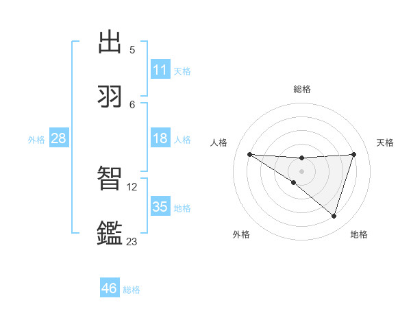 出羽 智鑑さんを姓名の画数から五運を鑑定