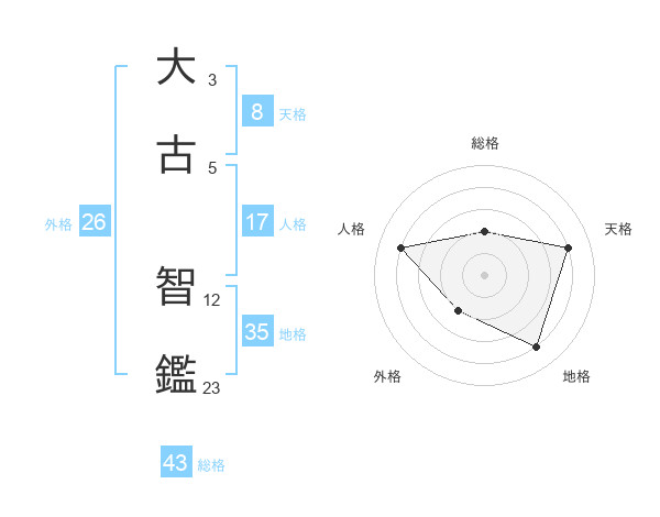大古 智鑑さんを姓名の画数から五運を鑑定