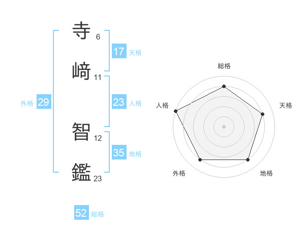 寺﨑 智鑑さんの総格は52画の4点!