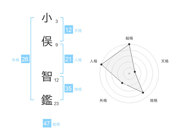 小俣 智鑑さんの総格は47画の5点!