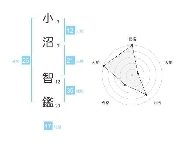 小沼 智鑑さんの総格は47画の5点!