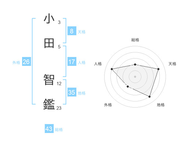 小田 智鑑さんを姓名の画数から五運を鑑定