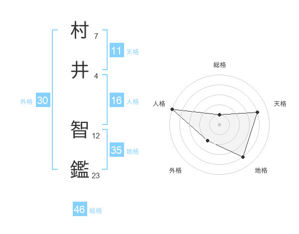 村井 智鑑さんを姓名の画数から五運を鑑定