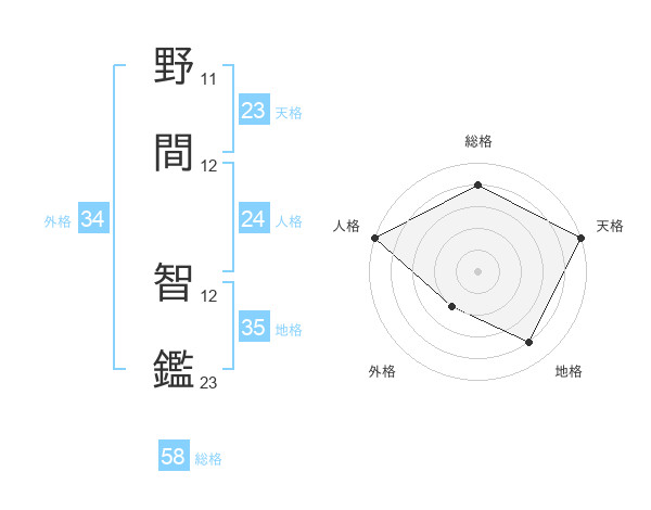 野間 智鑑さんを姓名の画数から五運を鑑定
