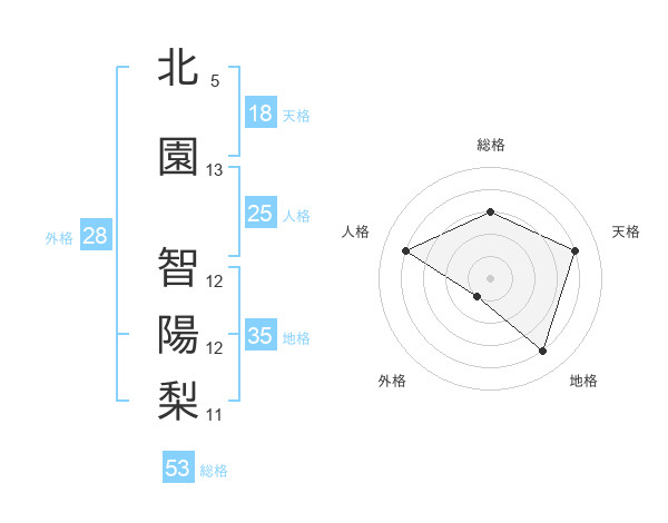 北園 智陽梨さんを姓名の画数から五運を鑑定