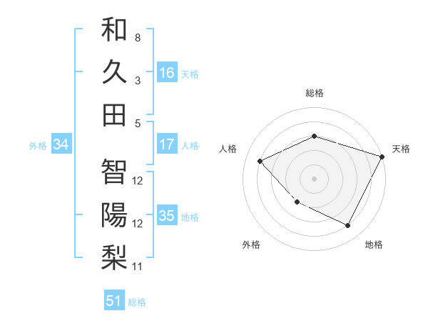 和久田 智陽梨さんを姓名の画数から五運を鑑定