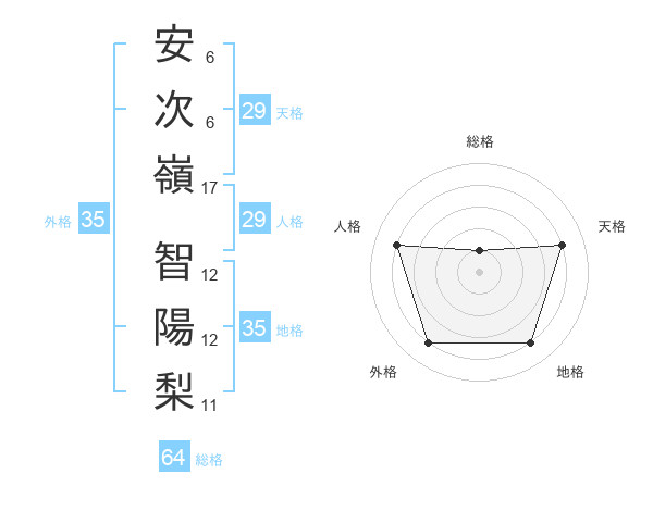 安次嶺 智陽梨さんを姓名の画数から五運を鑑定
