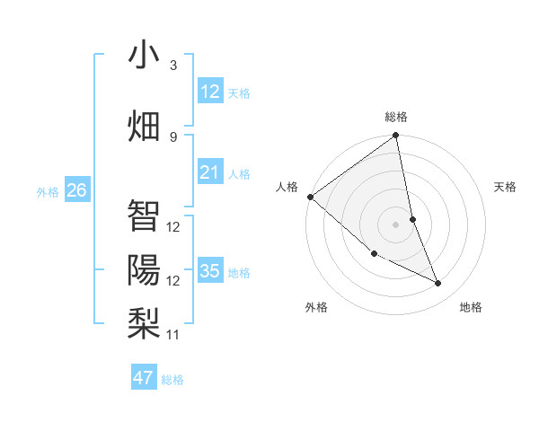小畑 智陽梨さんを姓名の画数から五運を鑑定