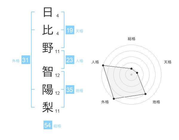 日比野 智陽梨さんを姓名の画数から五運を鑑定
