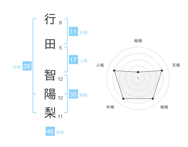 行田 智陽梨さんを姓名の画数から五運を鑑定