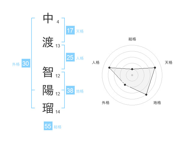中渡 智陽瑠さんの地格は38画の4点!