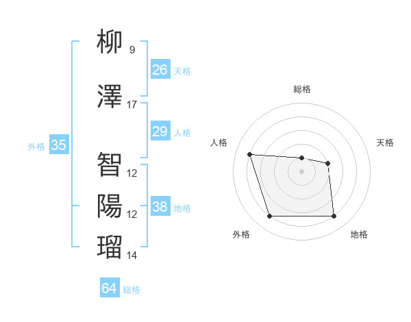 柳澤 智陽瑠さんの地格は38画の4点!