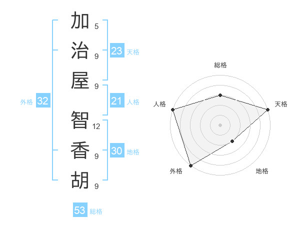 加治屋 智香胡さんを姓名の画数から五運を鑑定