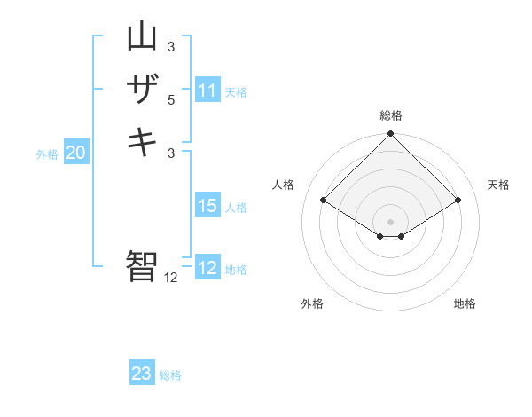 山ザキ 智さんの総格は23画の5点!