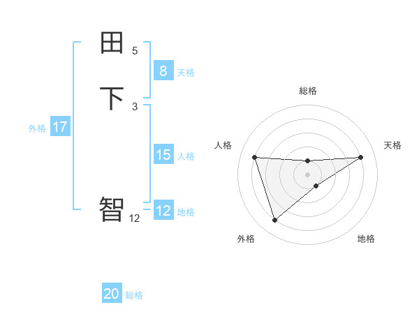 田下 智さんの総格は20画の1点!
