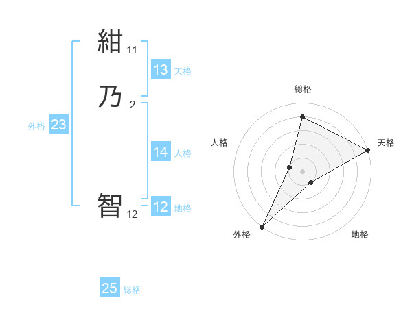 紺乃 智さんの総格は25画の4点!