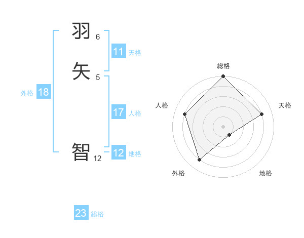 羽矢 智さんの総格は23画の5点!