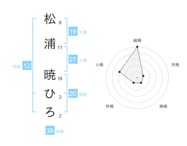 松浦 暁ひろさんを姓名の画数から五運を鑑定