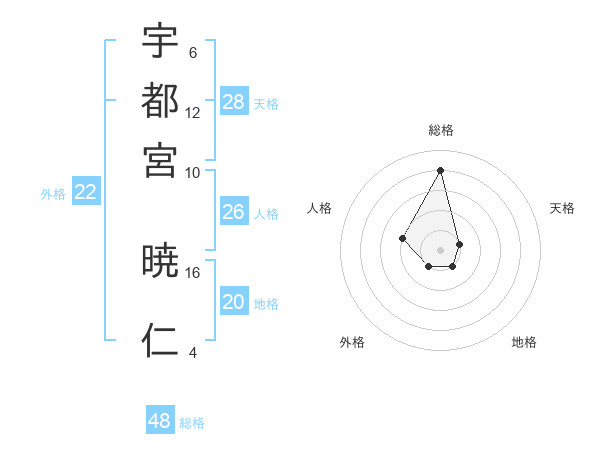 宇都宮 暁仁さんの総格は48画の4点!