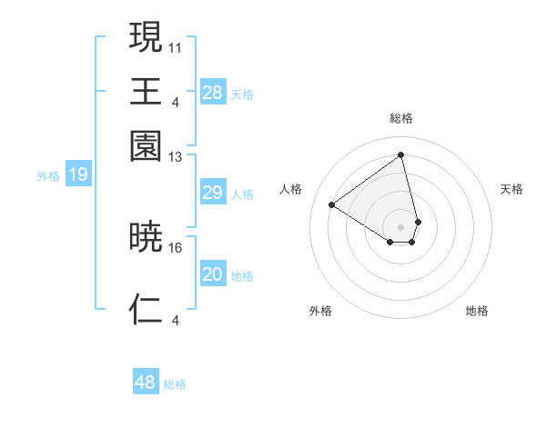 現王園 暁仁さんを姓名の画数から五運を鑑定