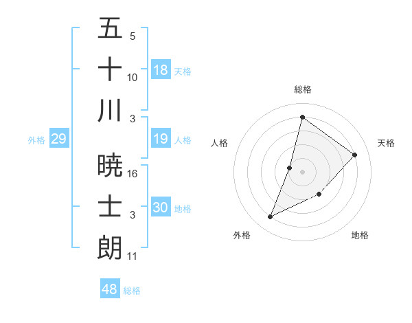 五十川 暁士朗さんを姓名の画数から五運を鑑定