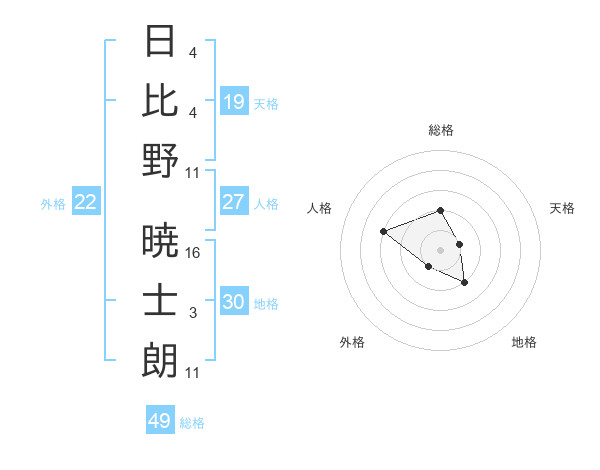 日比野 暁士朗さんを姓名の画数から五運を鑑定
