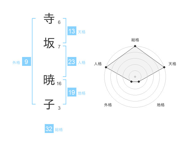 寺坂 暁子さんの天格は13画の5点!
