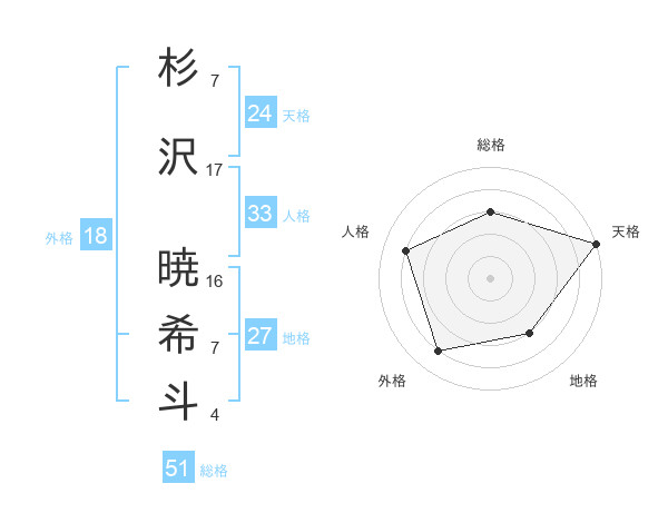 杉沢 暁希斗さんの総格は51画の3点!
