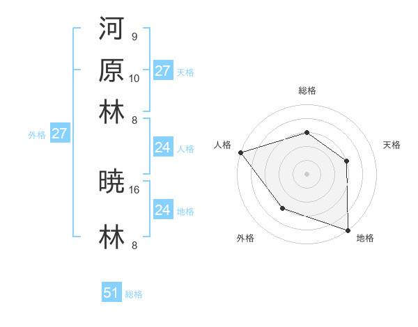 河原林 暁林さんの総格は51画の3点!